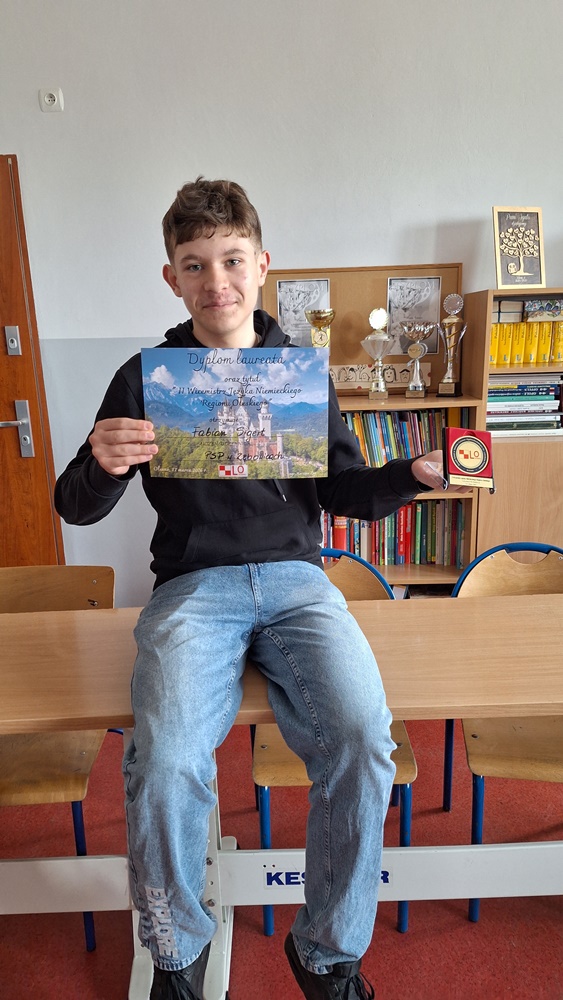Miło nam poinformować, że Fabian Sigert z kl. 8 został II Wicemistrzem Języka Niemieckiego Regionu Oleskiego. IV Regionalny Konkurs Języka Niemieckiego odbył się 17 marca 2026r. a organizatorem był Zespół Szkół w Oleśnie I Liceum Ogólnokształcące im. Lotników Polskich. Konkurs odbywał się w ramach dni otwartych szkoły.